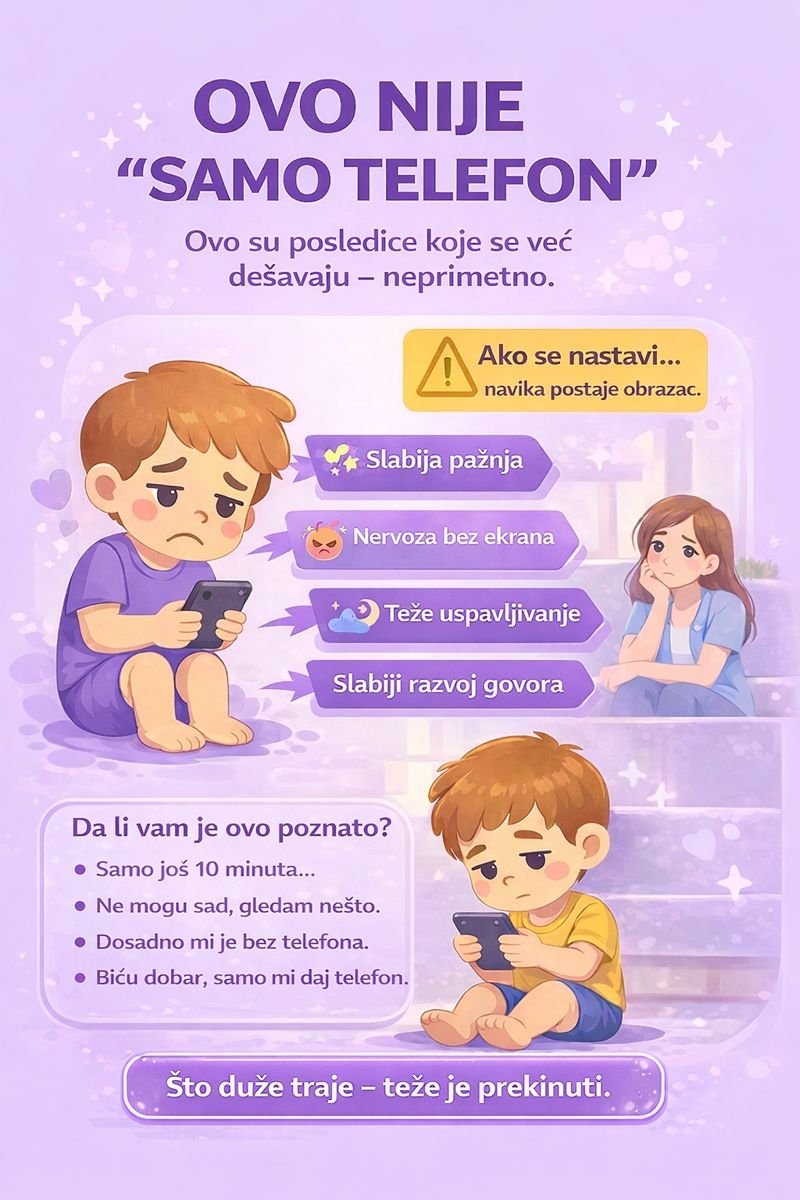 Ali vremenom, telefon prestaje da bude pomoć — i počinje da bude glavni izvor zabave, smirenja i pažnje.